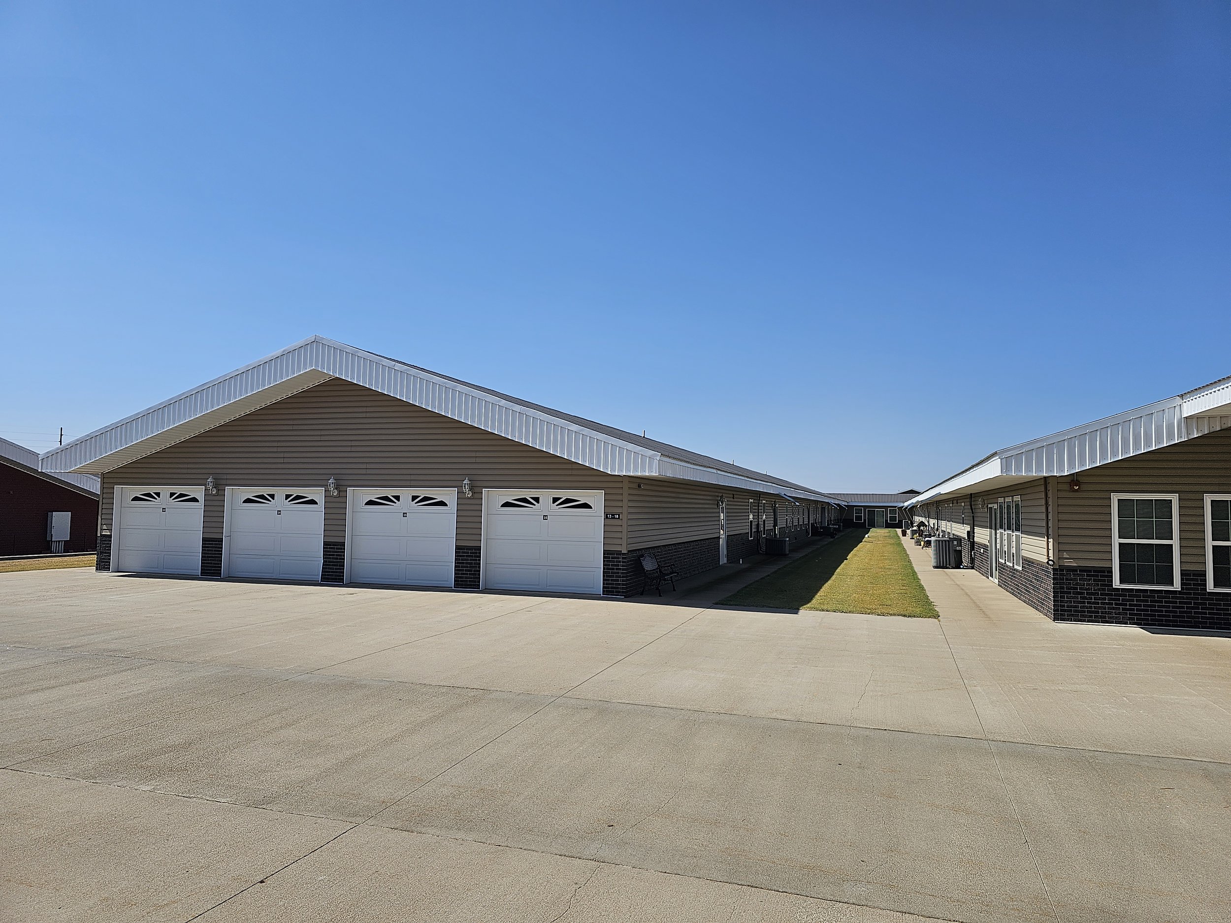 Colby Estates presents twenty-two (22) spacious senior apartments boasting an array of exceptional amenities. Each unit is equipped with a reinforced storm shelter, expansive garages capable of accommodating a vehicle along with additional storage space. These 1300 square foot residences feature two (2) bedrooms and two (2) baths, complete with a dedicated laundry area furnished with washer/dryer units. The modern kitchen is fully appointed with essential appliances including a dishwasher, stove, and refrigerator. Residents also enjoy access to a communal dining area and kitchen facilities, ideal for hosting events such as birthdays, anniversaries, and family reunions. Additionally, a beauty salon is conveniently available on-site.